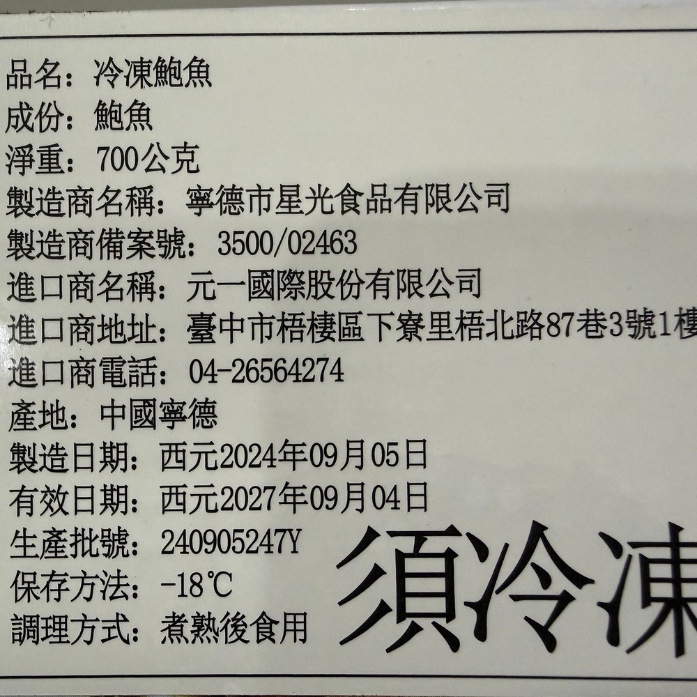 規格∕重量:淨重700g±30g 毛重1000g±30g 包冰30%